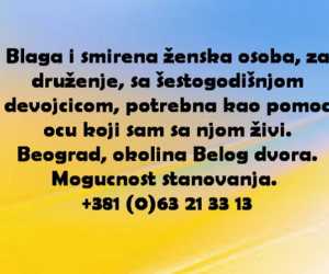 Blaga i smirena zenska osoba, za druzenje, sa sestogodisnjom devojcicom, potrebna kao pomoc ocu koji s