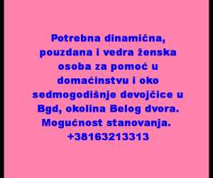 Dinamicna, pouzdana i vedra zenska osoba za pomoc u domacinstvu i oko sedmogodisnje devojcice u Bgd, ok