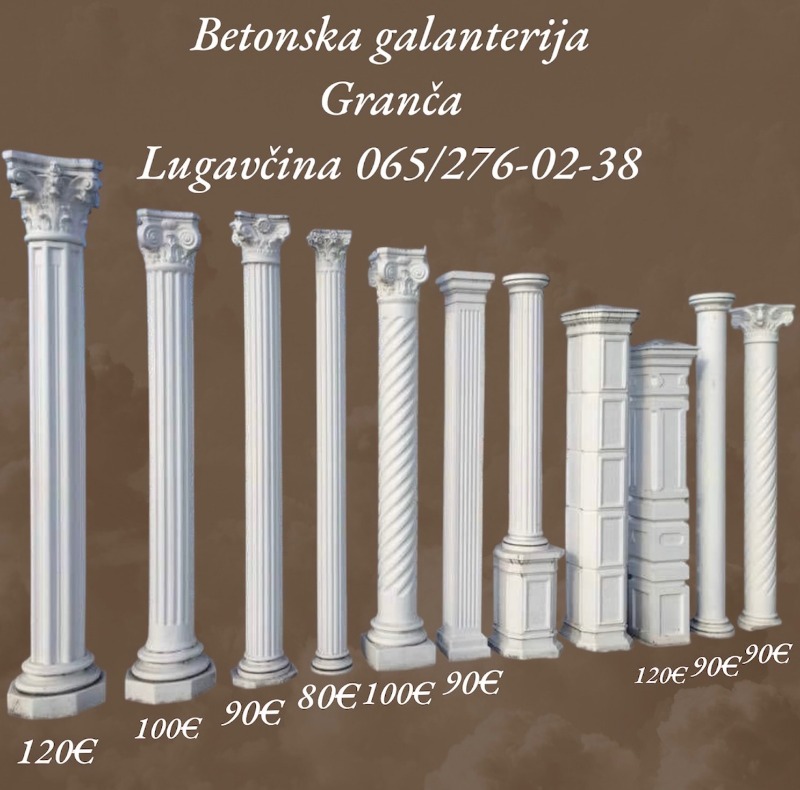 U ponudi imamo grčke stubove, letnjikovce, roštilje, pečenjare, fontane, česme,