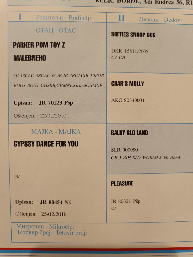 Ruske krvne linije sa svim papirima (rodovnik, pasos, cip)